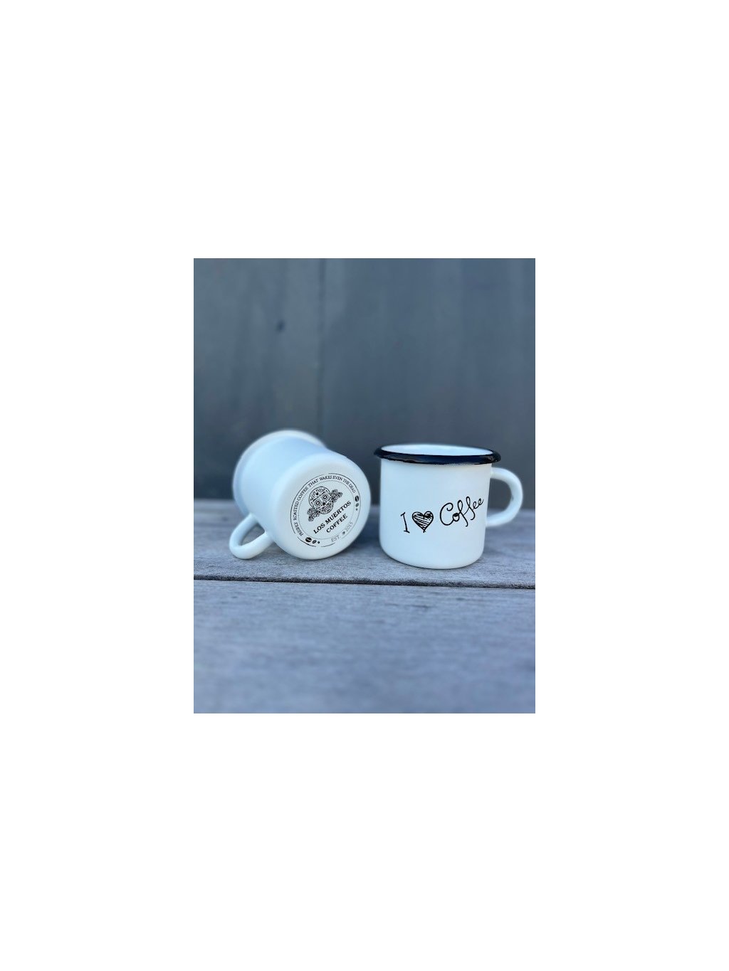 The enamel mug is a great addition to your kitchen and for outdoor coffee trips. The design of the cup is matte white with a glossy print "I love coffee".