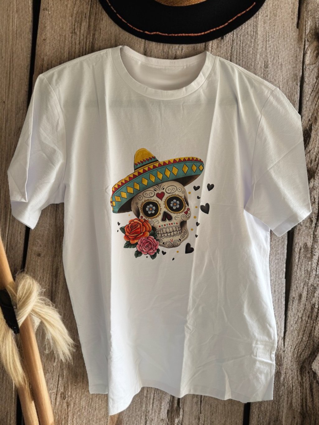 This shirt features a vibrant sugar skull design with a sombrero – a tribute to bold style and bold coffee. Made for those who wear their vibe on their chest.